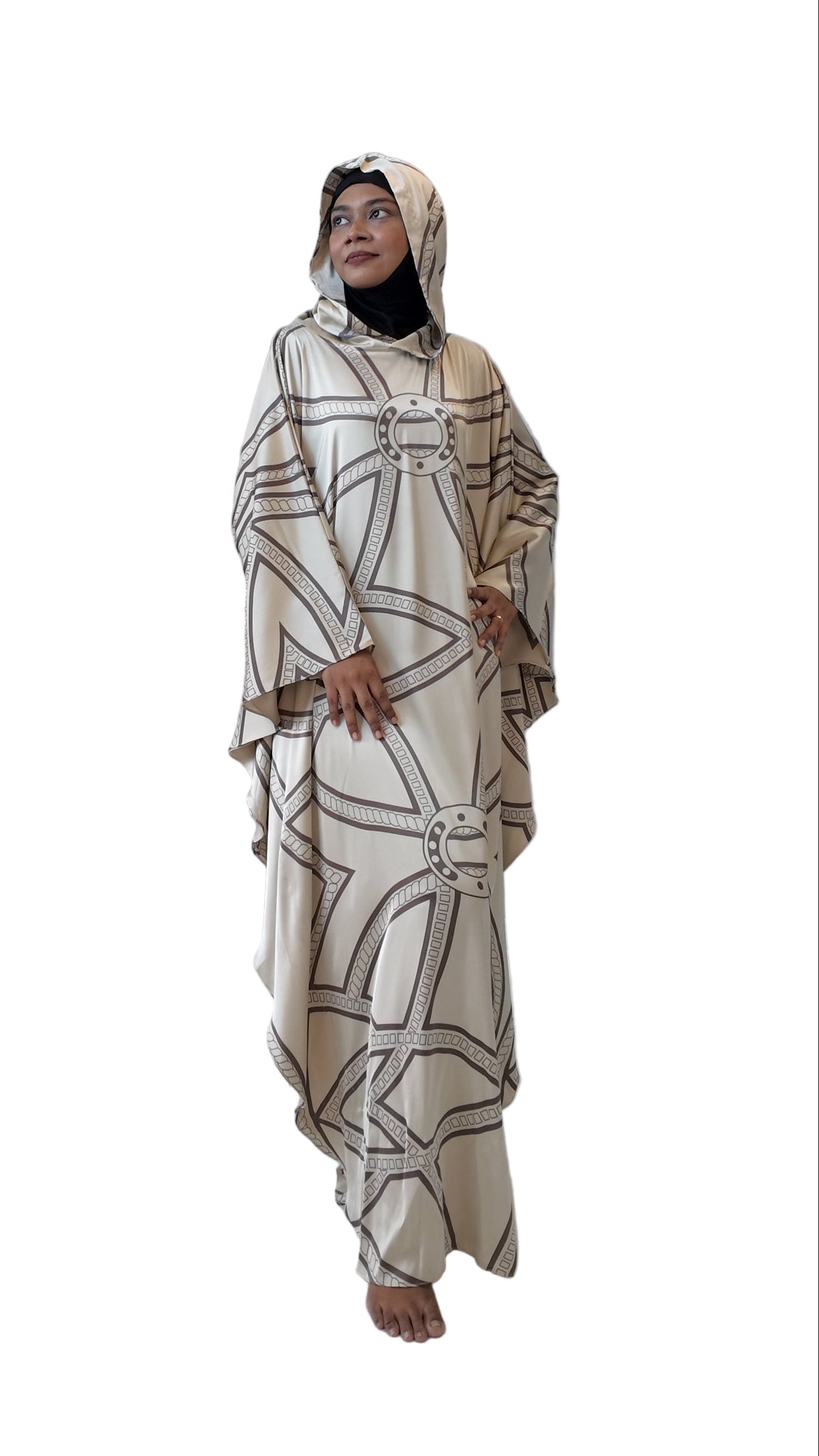 Where sophistication meets subtle allure — Hayah captures timeless elegance with a modern, free-flowing twist. Each kaftan is adorned with delicate chain motifs, echoing the grace of fine jewelry and the strength of understated luxury.