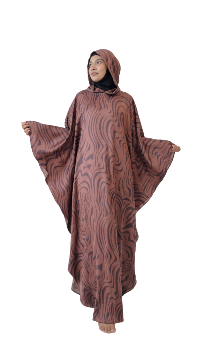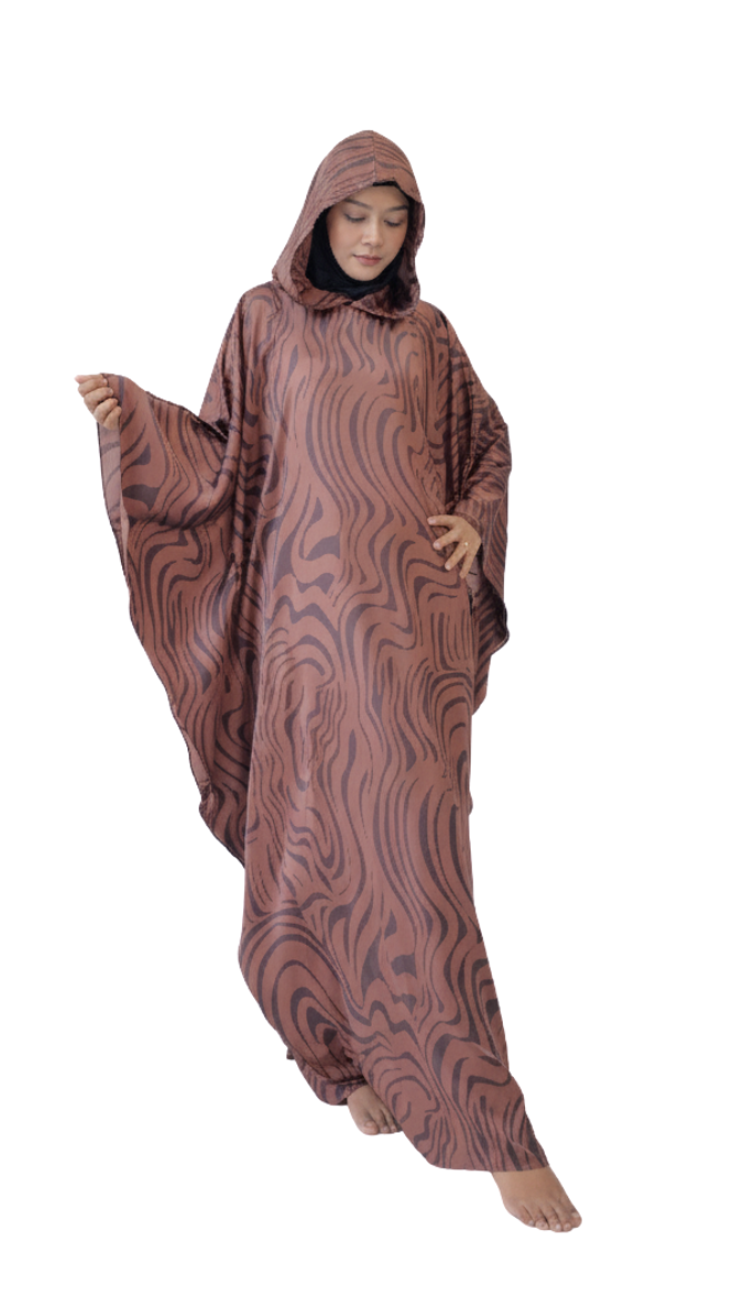 Featuring an abstract print inspired by natural ripples and optical art, this kaftan is a visual poem — bold, modest, and unapologetically expressive. Whether you're attending a gallery opening or a refined evening gathering, "Amiera" promises to leave a lasting impression.